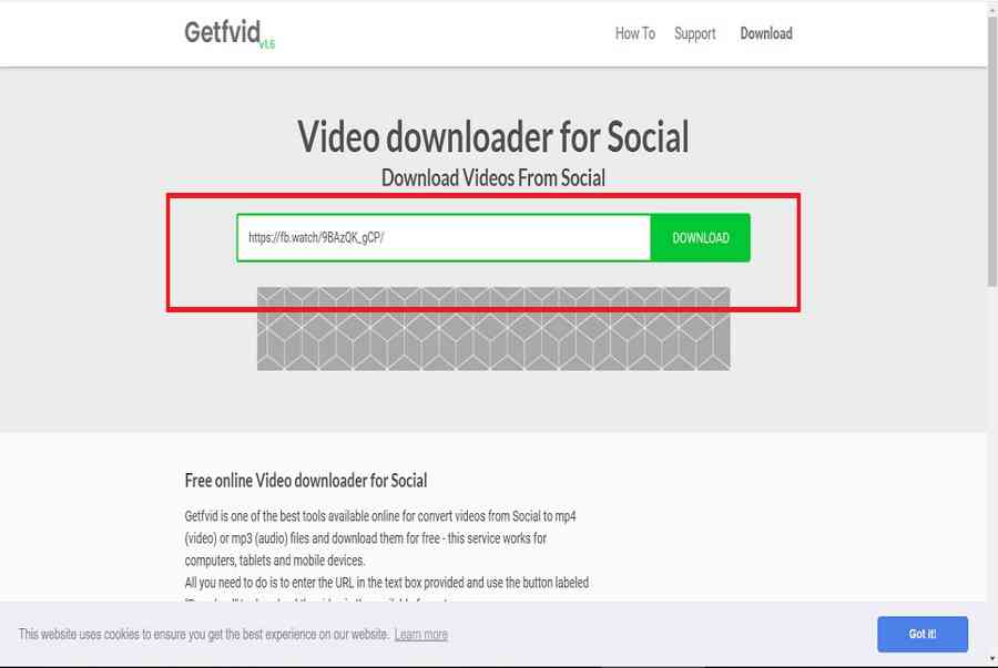 Bước 2 : Dán URL đó vào websitedownload video Facebook HD