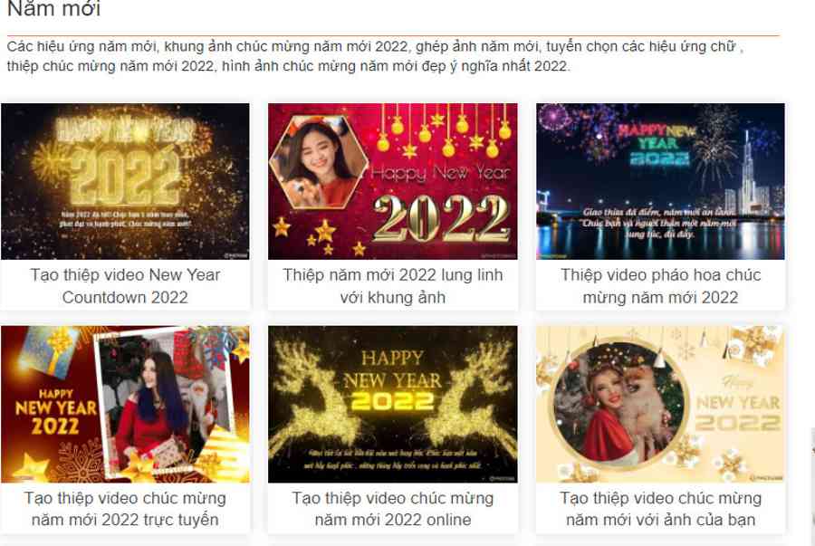 Bước 1: Bạn truy cập vào đường link https://ephoto360.com/nam-moi-c20, sau đó chọn mục Tạo thiệp video New Year Countdown 2022.