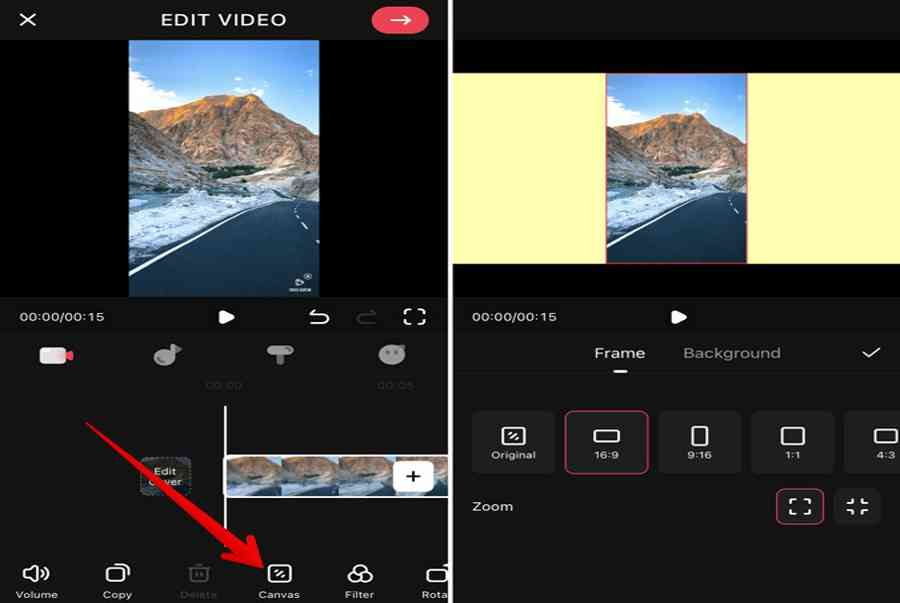Mở ứng dụng và thêm video vào đó. Nhấn vào Canvas và chọn kích thước thích hợp. Sử dụng các nút thu phóng để điều chỉnh kích thước. Thay đổi màu nền, độ mờ hoặc hình ảnh bằng tùy chọn Nền. Kiểm tra các ứng dụng chỉnh sửa video thú vị khác dành cho iPhone.
