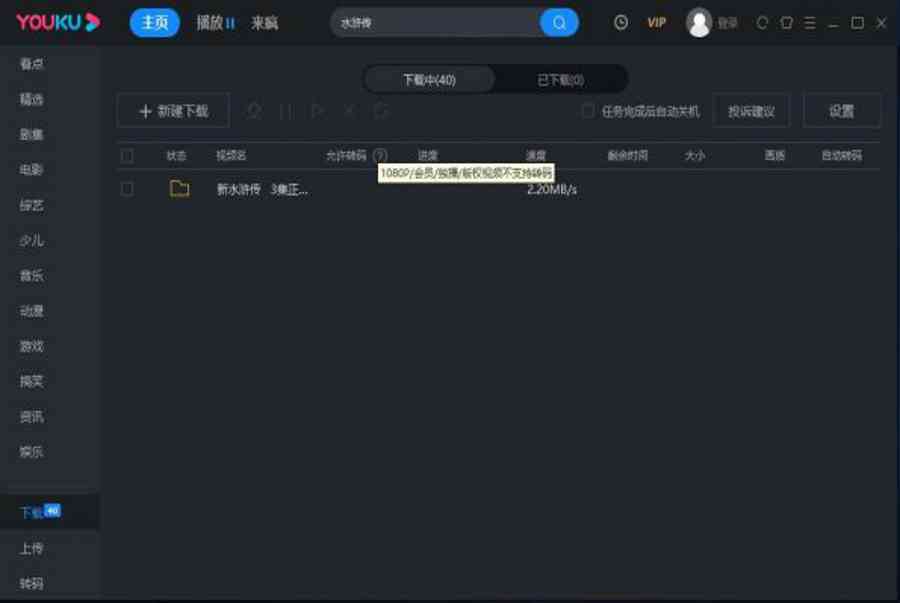 Bạn gõ tên phim cần tải về vào thanh tìm kiếm, rồi Enter. Ví dụ : Phim thủy hử 水浒传 。