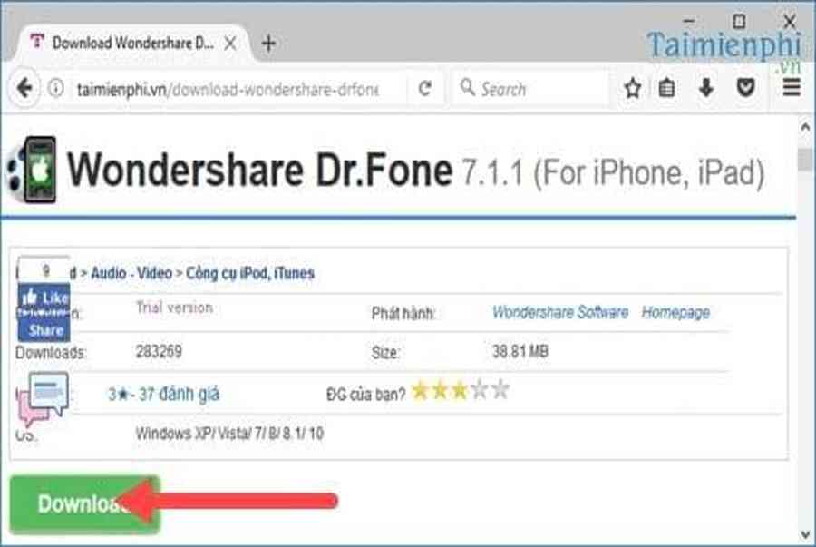 Bước 1: Đầu tiên chắc chắn chúng ta muốn tải ảnh từ iCloud về máy tính thì phải tải phần mềm Wondershare chúng tôi về máy tính: Download Wondershare Dr.Fone.