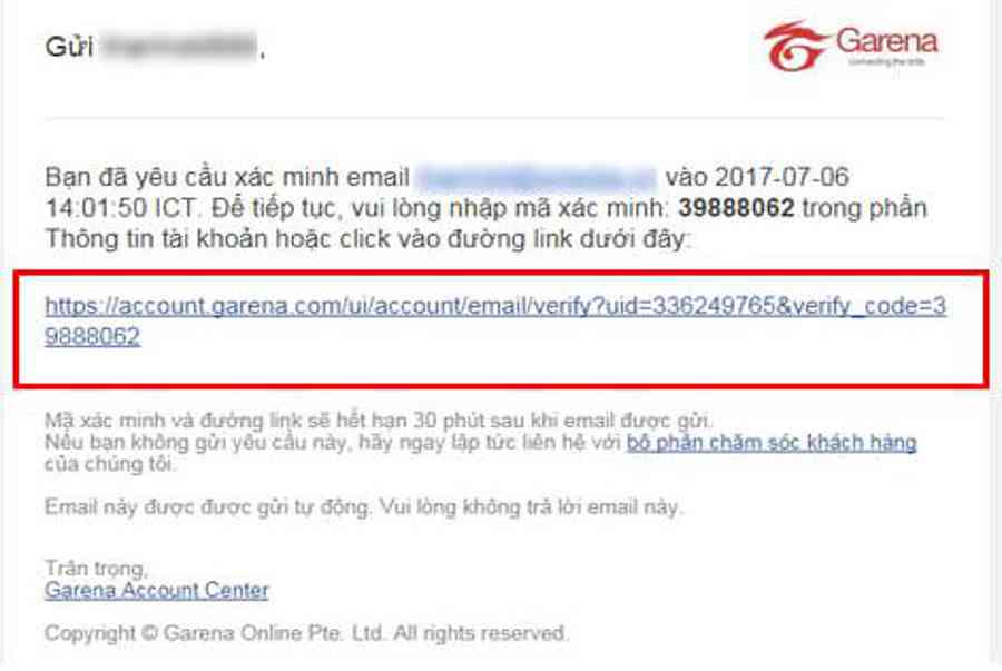 Bước 6: Sẽ có một Email Garena được gửi đến hòm thư, các bạn hãy truy cập vào hòm thư và mở lên.