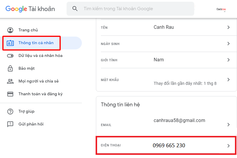 Bước 4: Chuyển đến trang tài khoản Google, chọn vào mục Thông tin cá nhân (Your personal info).