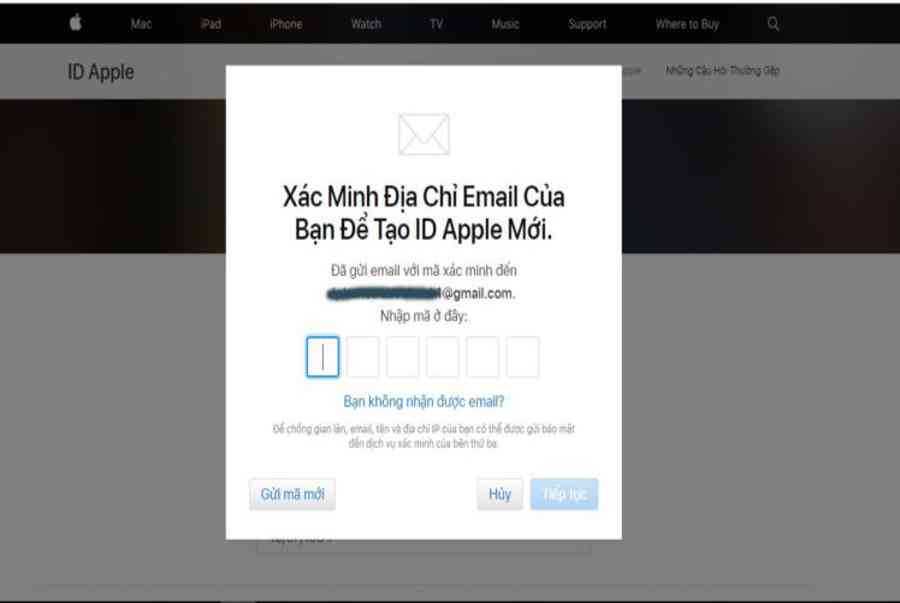 Nhập mã xác nhận để hoàn tất tạo tài khoản ID Apple .