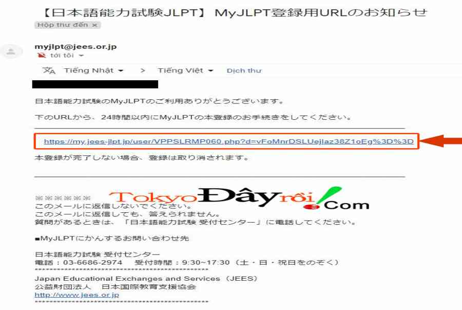 Bước 7 : Kiểm tra email để kích hoạt tài khoản My JLPT ID bạn vừa đăng ký.