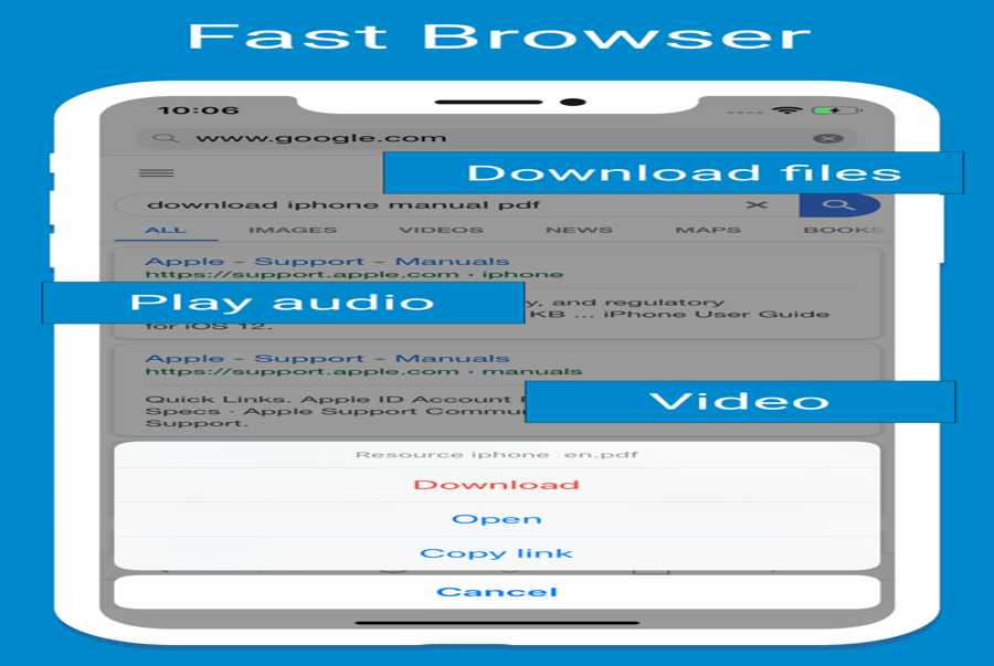 Browser and Documents Manager là ứng dụng được cho phép người dùng duyệt web và tải những tài liệu, những tệp, những video trên Youtube, phim, … cho iPhone .