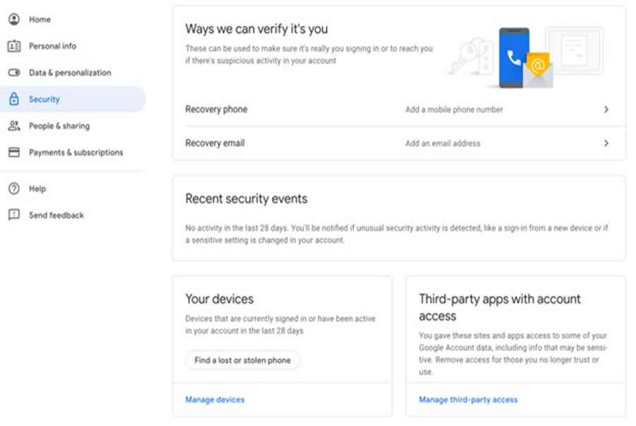 Kiểm tra hoạt động của bạn trên các tài khoản