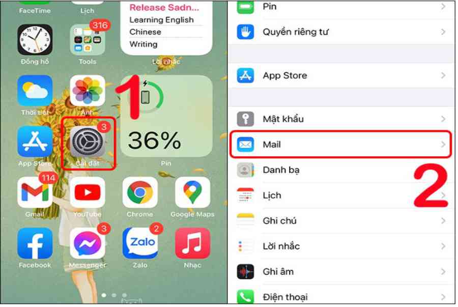 Bước 1: Bạn vào mục Cài đặt trên iPhone, sau đó chọn mục Mail.