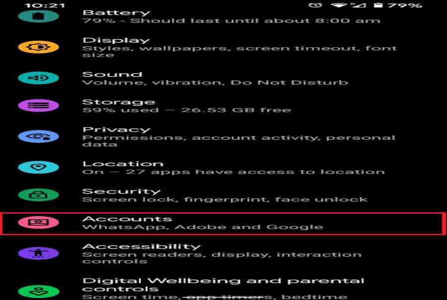 Bước 1. Trên điện thoại Android của bạn, mở ứng dụng ‘Settings/ Cài đặt‘, cuộn xuống và nhấn vào ‘Account/ Tài khoản‘ để tiếp tục.